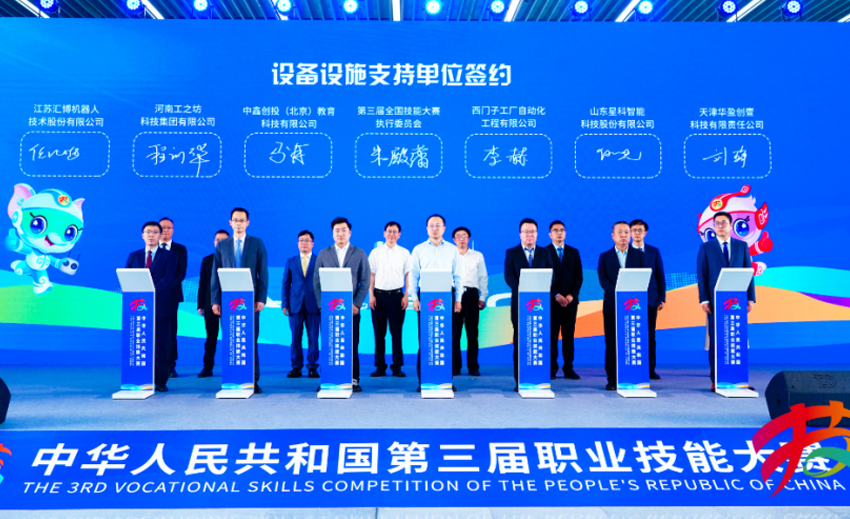 第三届全国技能大赛由人力资源社会保障部主办,是目前国内规格最高、项目最多、规模最大、水平最高的综合性国家职业技能赛事。此次签约,是汇博机器人积极履行社会责任、支持国家高技能人才培养战略、推动现代职业教育高质量发展的具体行动。